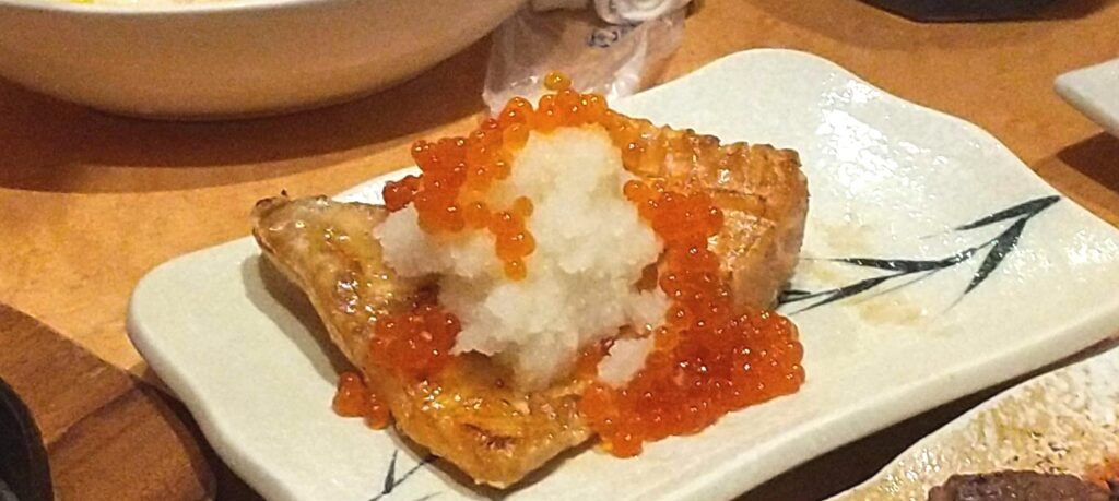 皮目は香ばしく焼かれ、脂は適度に落ちています。そこにいくらの塩味と旨味が重なり、さらに大根おろしが全体を引き締める構成。脂・塩味・さっぱり感の三要素がきれいにまとまっています。